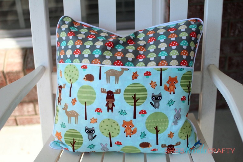 I used these great fabrics from Ann Kelle’s Woodland Pals from Robert Kaufman to make my pillow!
